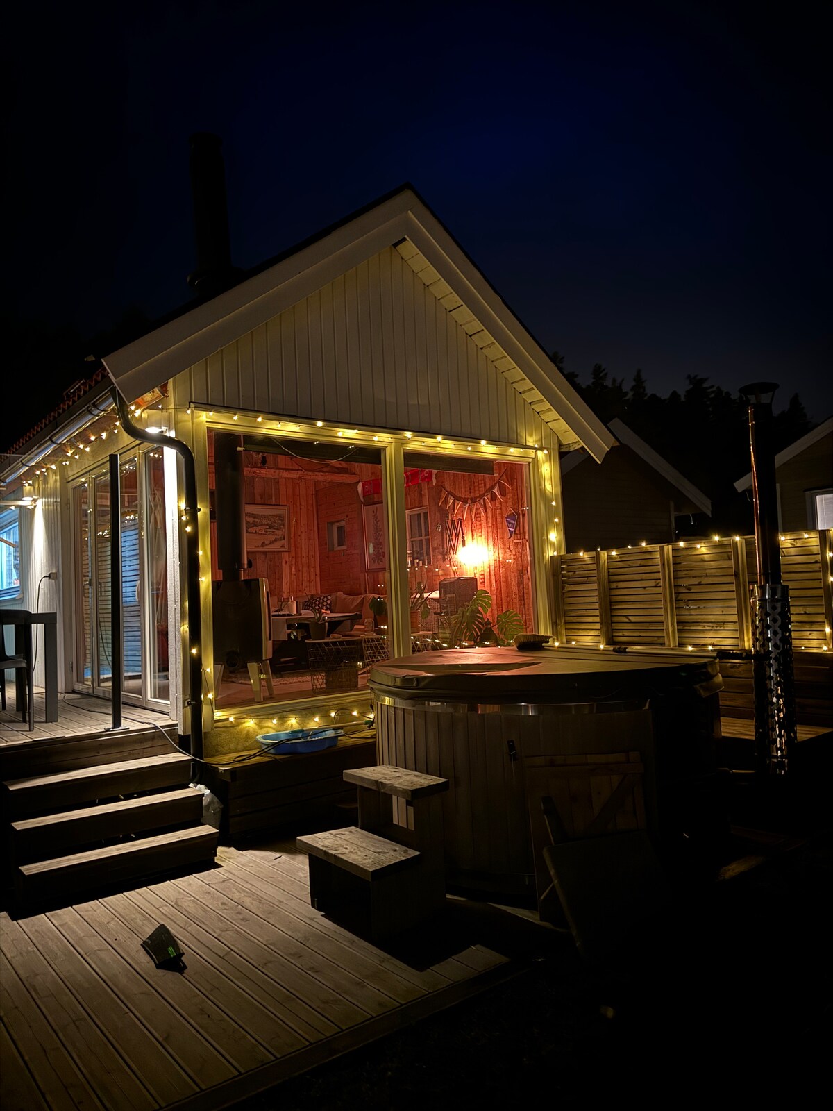 Great cabin where you live "on" the water. The cabin is located at Ystehede, by the Iddefjorden, about 10 km from the center of Halden. Here, guests have access to a floating jetty with a bathing ladder, as well as a beach consisting of stone and sand. Here there is outdoor furniture, a gas grill and opportunities to moor your own boat. Here there are many hiking trails in the forest and if you have your own boat you can fish or take the sea route to Halden and on to the Hvalerøyene.