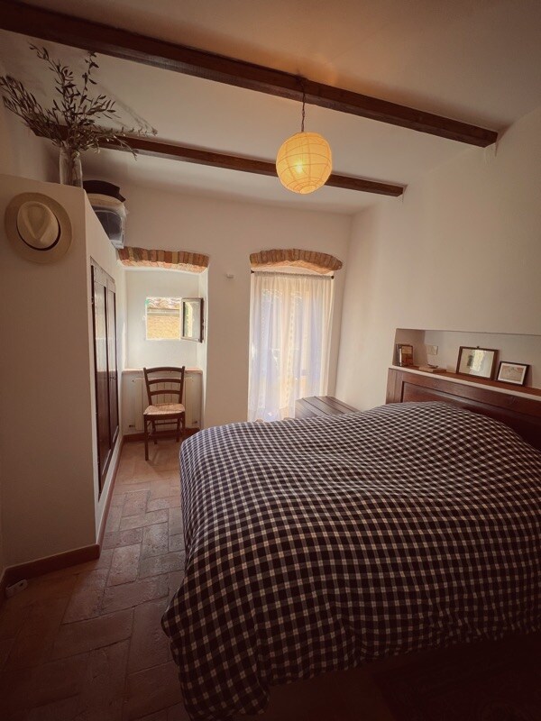 Húsið nýtur sjaldgæfs og töfrandi útsýnis yfir Val d'Orcia og Monte Amiata sem tryggir hámarks næði. Innréttingarnar endurspegla sjarma Toskana-stílsins með antíkhúsgögnum og frágangi handverksmanna á staðnum. Hún er búin tvöföldu svefnherbergi, stórri stofu með stóru borði, fullbúnum eldhúskrók, tvíbreiðum svefnsófa fyrir framan arininn í stofunni. Veröndin fyrir utan gerir þér kleift að borða með litina í sólsetrinu sem bakgrunn.