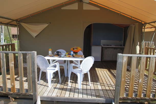 Laissez vous bercer par les sons de la nature dans ce logement unique... A quelques mètres de la forêt, proche de la sortie d'autoroute A11, nous vous accueillons sur notre terrain dans des tentes décorées avec goût.. Equipées de véritable matelas, elles allient confort et respect de la nature. Un espace tente/douche, ainsi qu'un toilette sèche sont disponible. Vous pourrez garer vos voitures sur le terrain en toute sécurité. Possibilité panier petit déjeuner en sus(café, viennoiseries, pain..)
