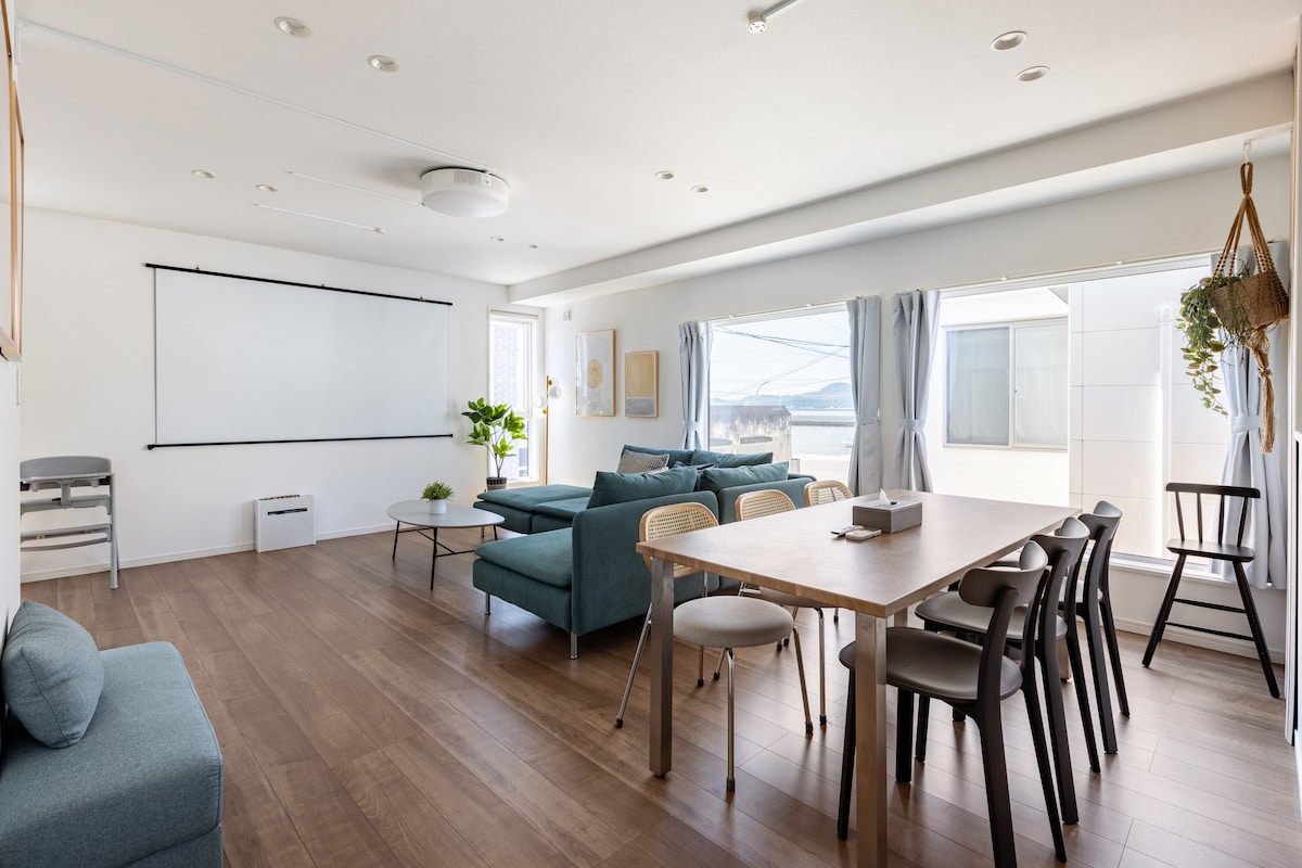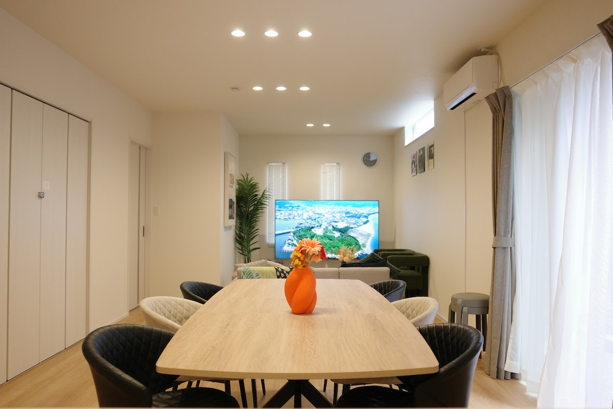 NÝTT! 2 mínútna göngufjarlægð frá sjónum/Rúmgott 4LDK hús/Ókeypis bílastæði fyrir 2 bíla/Veranda BBQ og kvikmyndahús