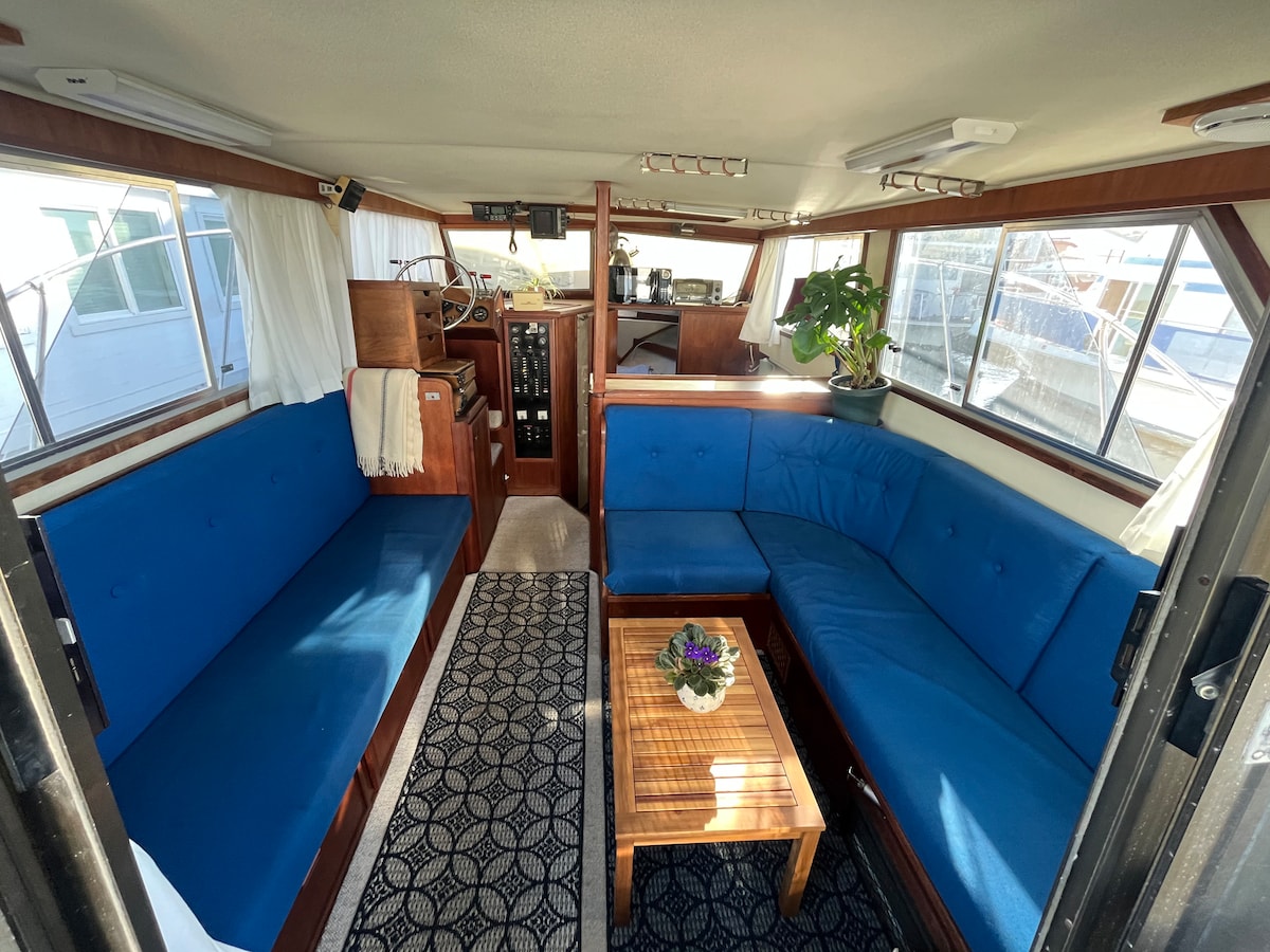 Húsbáturinn okkar er staðsettur við vatnið við Sausalito Richardson-flóa og býður upp á einstaka upplifun af óviðjafnanlegri fegurð. Magnað og yfirgripsmikið útsýnið blasir við eins og strigi rétt fyrir framan þig. Efri hæð endurbyggður húsbátur með þakverönd, fullbúnu eldhúsi og þvottahúsi þar sem hvert smáatriði er úthugsað, þar á meðal verk listamanna á staðnum. Að gista hér snýst ekki bara um gistingu heldur skapar það minningar sem munu dvelja lengi eftir að þú ferð. Hentar ekki ungum börnum/gæludýrum.