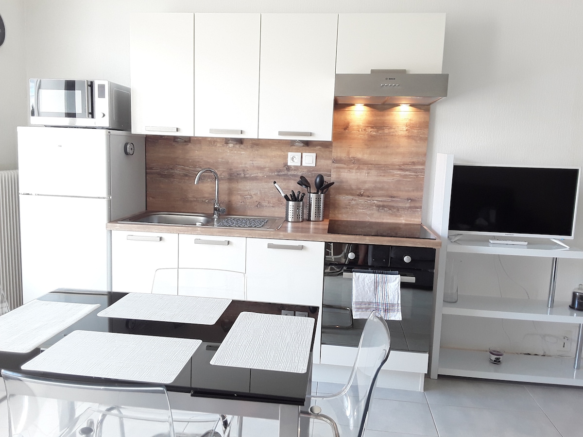 Sjálfstætt 17 m2 stúdíó sem er hluti af gestahúsinu og er staðsett í rólegu og notalegu hverfi. Þökk sé útiverönd verður þú með aðgang að litlu gróðurhorni. Gististaðurinn er staðsettur í Aigueblanche (Bellecombe), 1,7 km frá La Léchère heilsulindinni og 13 km frá Valmorel-skíðasvæðinu. Í hjarta dalanna þriggja er auðvelt að njóta gleðinnar í fjallinu. Börn og ungbörn eru ekki leyfð Engin gæludýr leyfð.