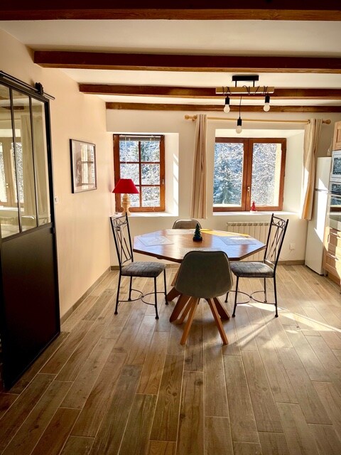Mjög góð hlýleg og sjálfstæð 70 m2 íbúð sem snýr í suður, á jarðhæð í skála á hæðinni Recoin. Gestir geta notið einkagarðs með mögnuðu útsýni yfir brekkur og fjöll. Skráningin: - staðsett 300m frá verslunum. - Aðgangur að hornbrekkunum (ESF og leikskóla),útritun og skíða til baka. - Ókeypis einkabílastæði utandyra MIKILVÆGT Því miður er gistiaðstaðan ekki aðgengileg fötluðu fólki (1 hæð til að fara niður)