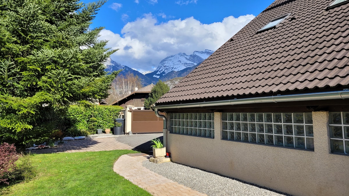 Í húsi frá Savoyard 1889 höfum við útbúið 85 herbergja íbúð með 30m löngum stofu og 20m löngum svölum með útsýni yfir garð sem snýr í suður til að bjóða þig velkominn á þetta fallega svæði. Stofa og svefnherbergi eru með loftkælingu. Möguleiki á að panta morgunverð. Mjög auðvelt aðgengi með þjóðveginum sem er í 2 km fjarlægð.