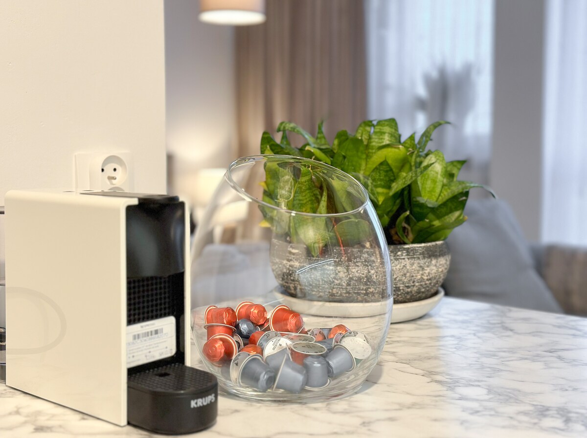 Notaleg og stílhrein íbúð við hliðina á Teatralny-torginu, í nokkurra mínútna göngufæri frá gamla bænum. Þetta er tilvalinn staður fyrir rómantíska fríið, afslappandi helgi eða rólega dvöl í miðborginni. Þetta er staður fyrir pör sem kunna að meta hönnun, stemningu og næði. Í stofunni er rúmgóð baðker sem er fullkomin fyrir kvöldbað í kertaljósi. Líflega miðborg höfuðborgarinnar er í nokkurra mínútna göngufæri.