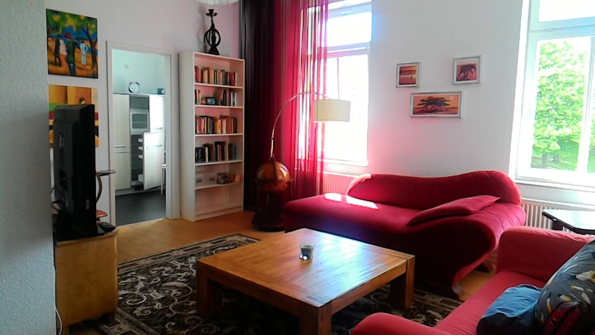 7 herbergja íbúð fyrir ofan almenningsgarðinn, 800 m að miðju og AÐALLESTARSTÖÐINNI