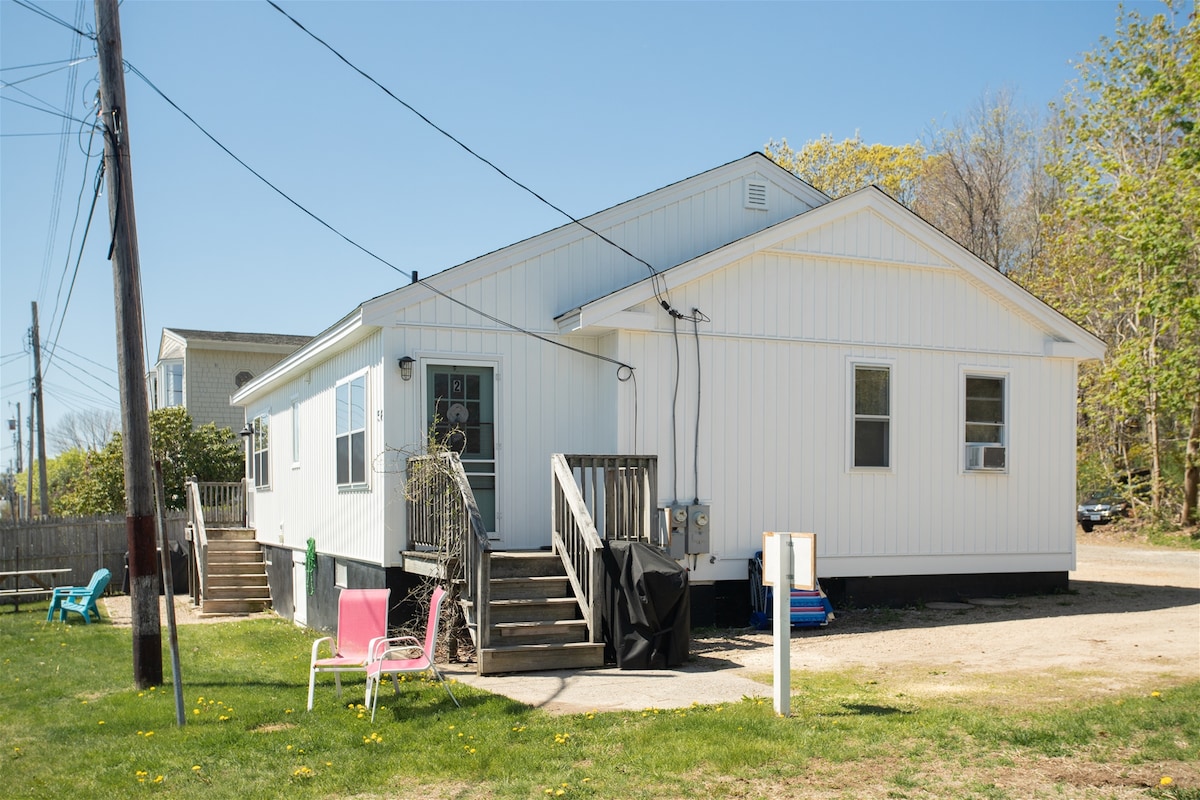 Verið velkomin í friðsæla afdrepið okkar við friðsæla hliðargötu í aðeins nokkurra skrefa fjarlægð frá spennunni á Old Orchard Beach. Fallega leigan okkar er með töfrandi harðviðargólf og fullbúið eldhús, fullkomið til að elda dýrindis máltíðir á meðan þú nýtur róandi hljóð hafsins í aðeins nokkurra mínútna fjarlægð. Upplifðu það besta úr báðum heimum þegar þú sökkvir þér í iðandi hjarta strandbæjar eitt augnablik og slakaðu á í friðsælum þægindum notalegrar leigu okkar þann næsta.