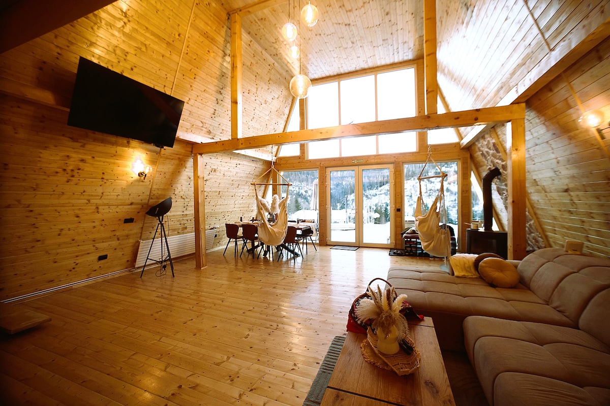 KayLuna Cabin Mătișești, Horea, Alba County Cabin located in the heart of the Apuseni Mountains In the middle of nature, far from the hustle and bustle. 4 bedrooms, all with double beds + sofa bed in the living room.(Capacity: 8 + 2 people) 2 bathrooms Heated hot tub (not included in the price) Sauna (not included in the price) Large terrace with dining area, sun loungers, and umbrella Children’s playground Barbecue Campfire area Fully equipped kitchen cabana_kayluna