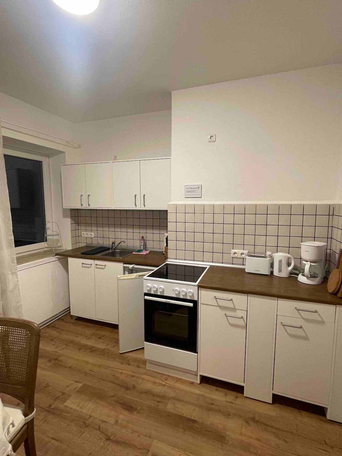 Freundliche Wohnung mit gemütlicher Einrichtung. Kaffeeautomat und Wasserkocher, sowie Toaster, eine 2 Plattenkochstelle und ein Kühlschank sind vorhanden. Ein Ankleidezimmer steht zur Verfügung. Ländlich gelegen ! Viele Freizeitangebote in der Nähe, für Kinder das Rastiland, das Wisentgehege. Der Harz, das Steinhuder Meer und das Weserbergland sind schnell und gut zu erreichen. Ein Pferdestall direkt am Haus so wie herrliche Klosterkirchen..... Kurz ein Ort zum träumen!