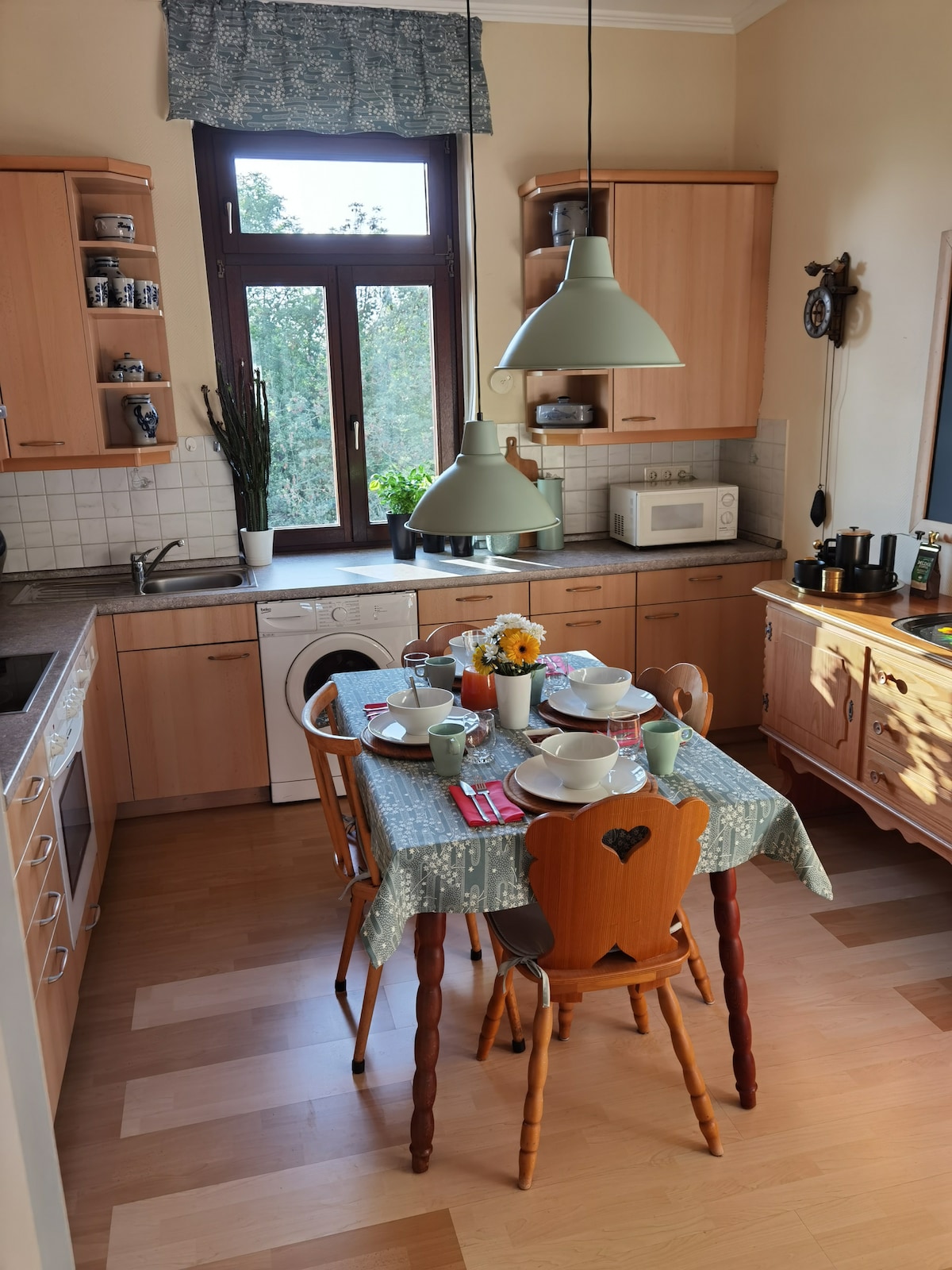 The sun-flooded apartment is located at a urban student quarter and within walking distance to the city center, campus and trade fair. Surrounded by two small green parks, it is equipped with everything you need to live, work, or lounge in comfort. Just enjoy the super fast internet, the home cinema, the view over the city, or the colorful life around. If you like cooking, our kitchen gives you everything you might desire. But be aware, the apartment is on the 5th floor and has no elevator!