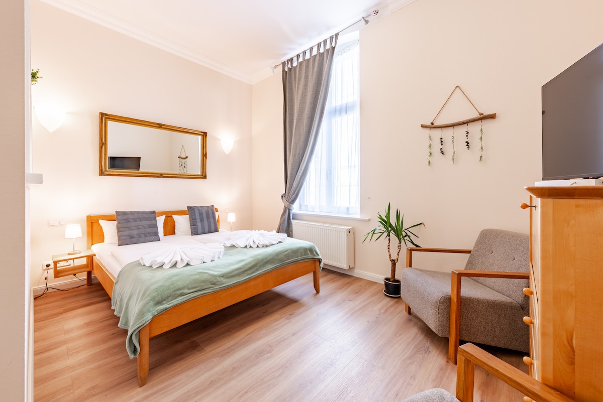 ŁATWE SAMODZIELNE ZAMELDOWANIE I WYMELDOWANIE O KAŻDEJ GODZINIE Świeżo odnowiony, niezależny apartament w eleganckim stylu, z w pełni wyposażoną, prywatną kuchnią (BEZ PIEKARNIKA) i łazienką, położony w cichej i bezpiecznej okolicy, znajdujący się zaledwie 15 minut spacerem od plaży! Duże i bardzo wygodne łóżko typu king size, smart TV z telewizją cyfrową, WI-FI, rolety antywłamaniowe, to wszystko uprzyjemni Państwa pobyt w atrakcyjnej cenie!