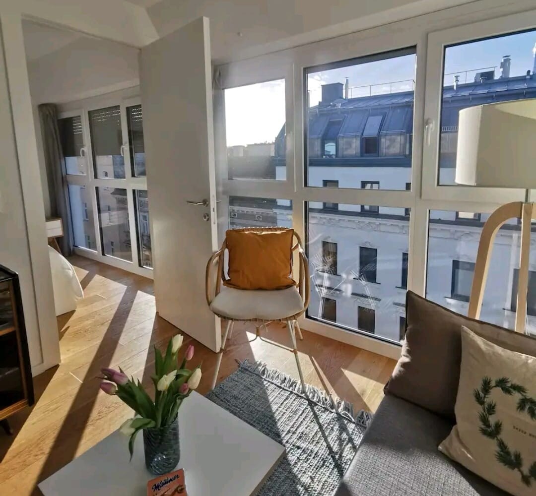 Þetta er rétti staðurinn fyrir þig ef þú ert að leita að rólegum gististað eftir erilsaman dag í Vín, miðsvæðis og aðgengilegur. Þessi nýja íbúð er staðsett í 10 mínútna göngufjarlægð frá Westbahnhof og mun hrífa þig með ófyrirleitnum glæsileika sínum og hagnýtum innréttingum. Tveggja herbergja íbúðin (70 m2) er á jarðhæð á verönd og samanstendur af vinalegu eldhúsi og stofu svæði, opnu rými, stóru svefnherbergi, rúmgóðu baðherbergi og salerni.