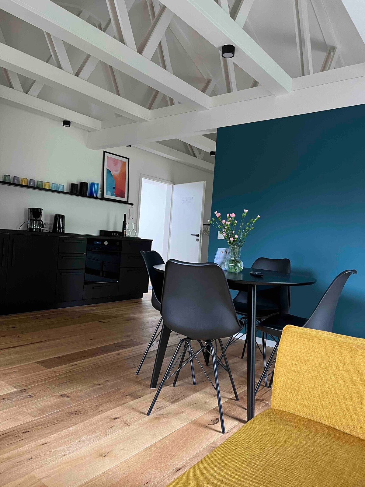 Þessi opna og glæsilega hannaða loftíbúð er í 1,5 km fjarlægð frá miðbænum. Einstök bjálkauppbygging býður þér afslöppun og afslöppun. Rúmgott eldhús er tilvalið fyrir umfangsmikið eldunarkvöld. Í göngufæri er verslunaraðstaða, bakarí, veitingastaðir og stór verslunarmiðstöð.