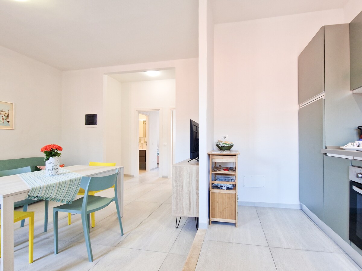Nýuppgerð eins svefnherbergis íbúð staðsett í rólegu íbúðarhverfi, 500m frá Capo Bianco ströndinni og 650m frá Padulella (sést á myndunum). Næsta matvöruverslun er í 500 metra fjarlægð og fjarlægðin frá höfninni og sögulega miðbænum í Portoferraio er 900 metrar og 1,6 km að lengd. Eignin samanstendur af stóru hjónaherbergi, baðherbergi og rúmgóðu eldhúsi, það er einnig með einkaútisvæði, ókeypis bílastæði inni í eigninni, Wi-Fi og þvottahúsi. Afsláttarkóðar ferju