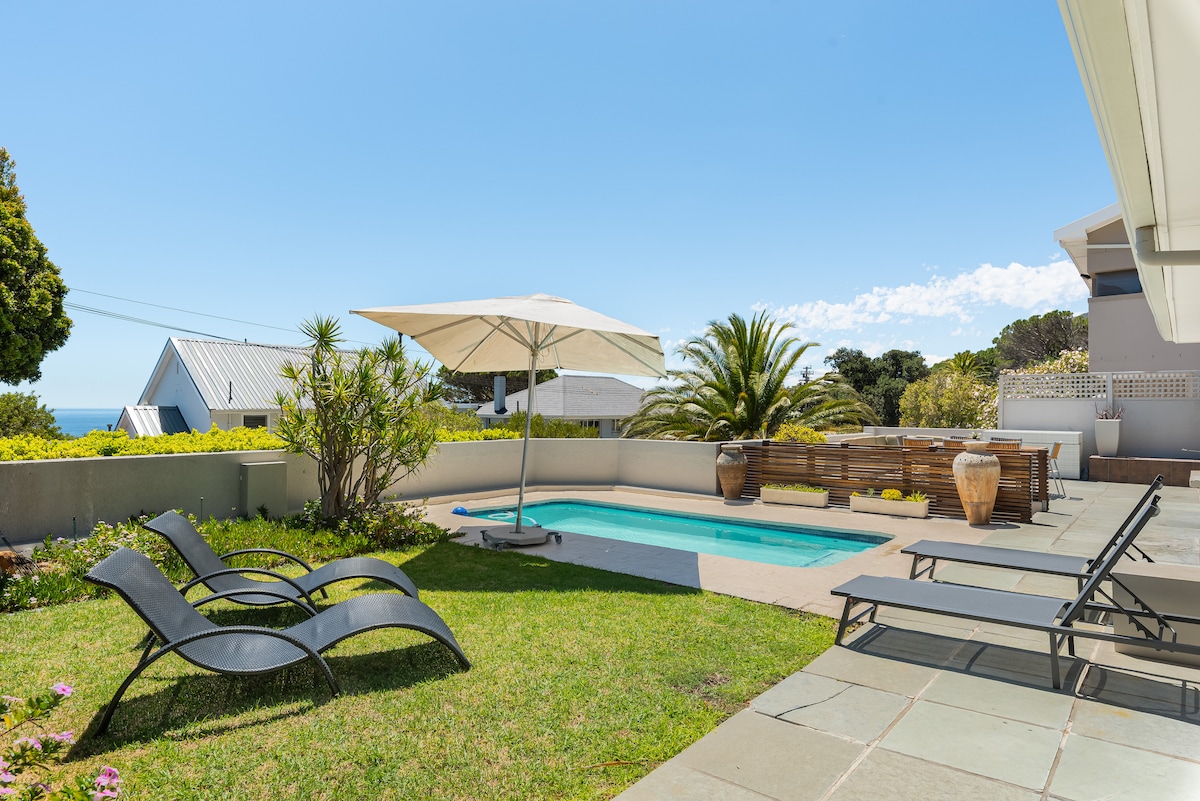 Þessi einstaka fjögurra svefnherbergja villa við sjóinn er himnasneið með síbreytilegu útsýni yfir hafið og stórkostlegu sólsetri. Fullbúið, opið stofusvæði rennur áreynslulaust í átt að svölunum þar sem þú finnur flæðissundlaug og stórkostlegt útsýni. Hlustaðu á ölduhljóðin sem brotna á steinunum og sendu brimið sem flýgur steinsnar í burtu. Staðsett við enda rólegs cul-de-sac og í aðeins nokkurra metra fjarlægð frá rómantísku sandströndinni Bakoven.
