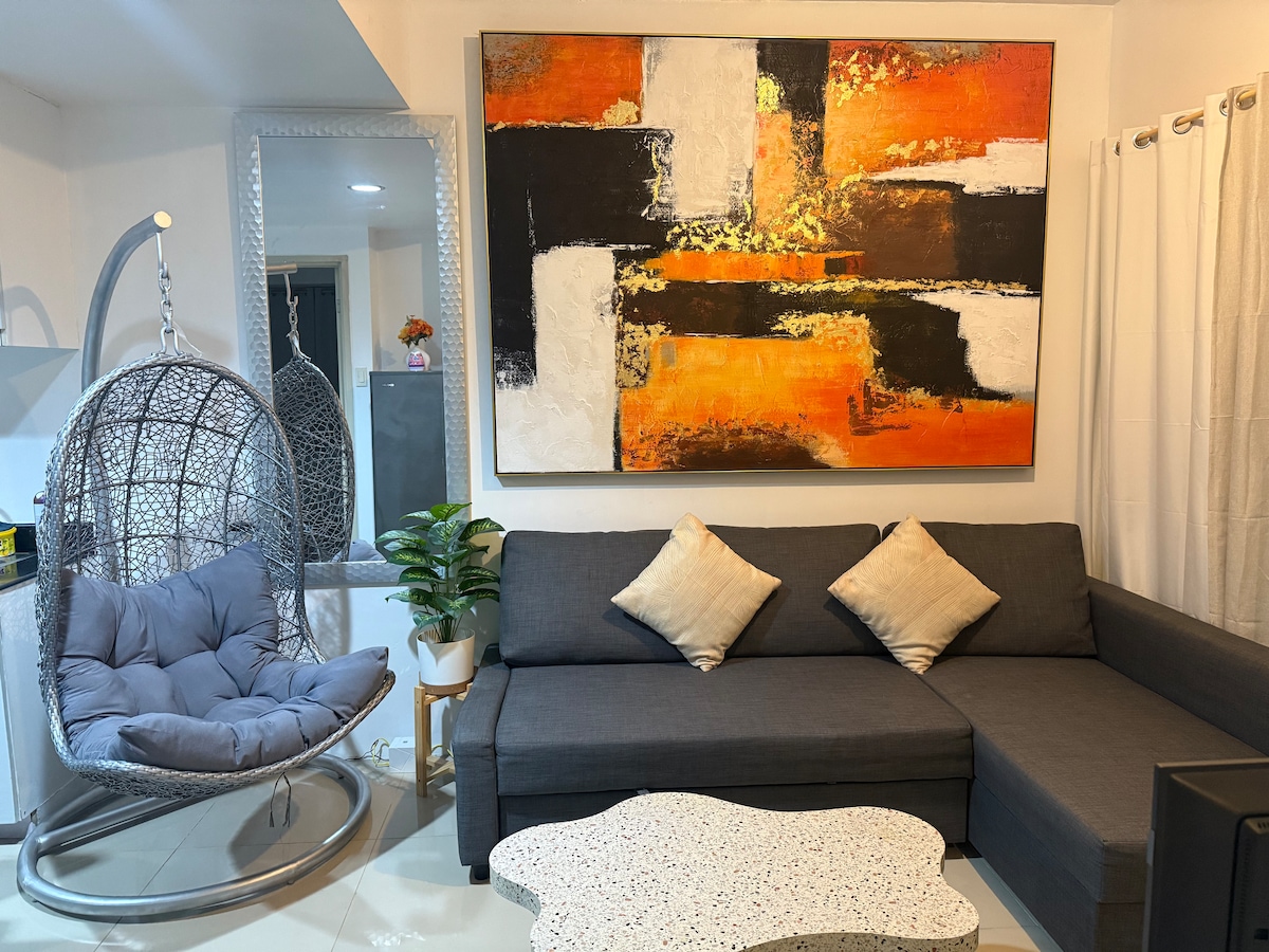 Upplifðu okkar ultraluxe og notalega, 32fm 1BR w/ balcony (pool view) í Shore 3 Residences, rétt fyrir framan Moa og er í aðeins 4,5 km fjarlægð frá NAIA! Með 1-65 ”SmartTV (living rm), 1-40" SmartTV (svefnherbergi), 200mbps WIFI, Utube og Netflix, rúm í queen-stærð, svefnsófa, loftræstingu bæði í svefnherbergi og stofu og Nespresso-vél eru bara nokkur atriði sem við útbjuggum þessa einingu ríkulega fyrir þig!