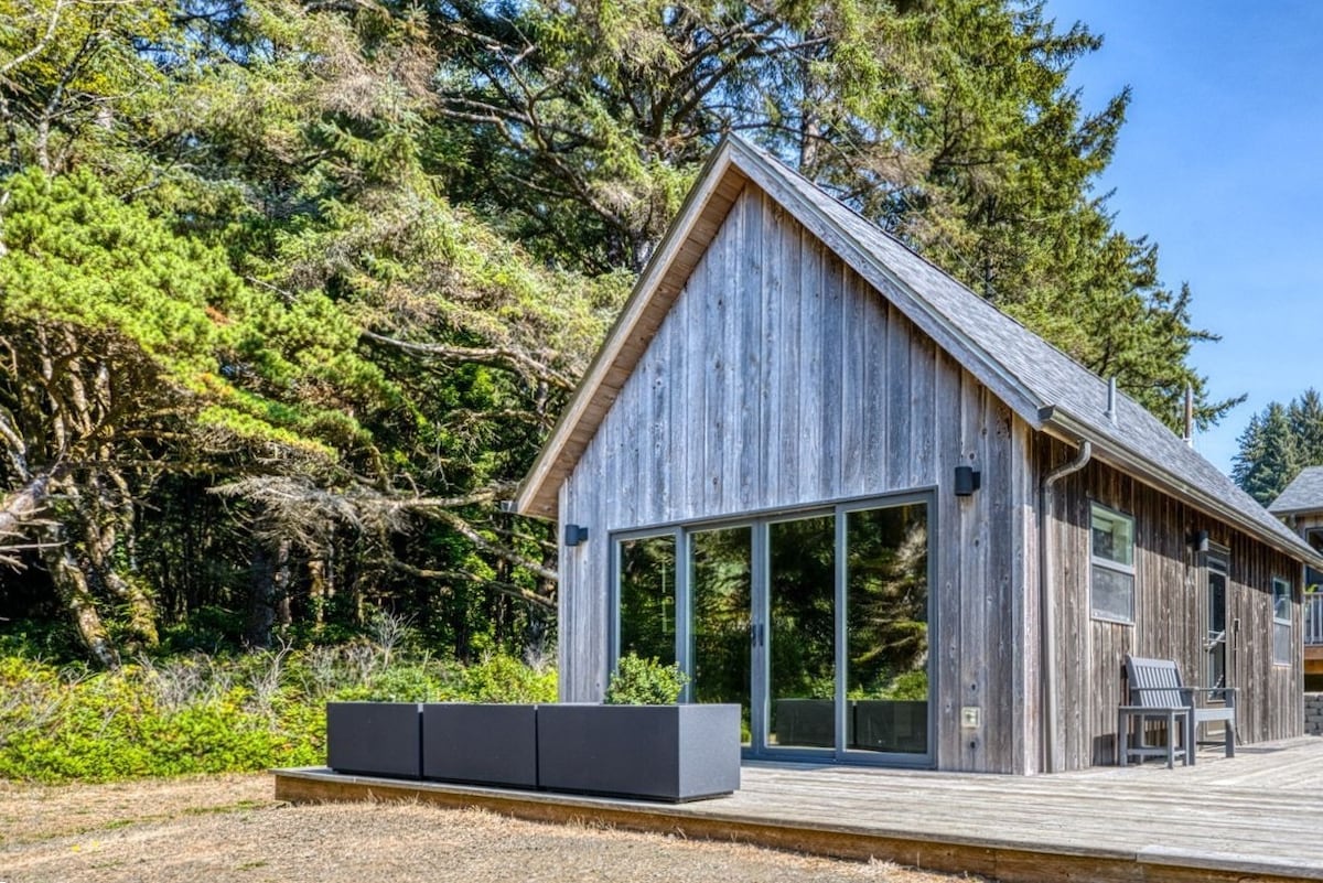Upplifðu töfra Oregon Coast í þessum nýuppgerða tvíbýlishúsi við sjóinn með gasarni sem er fullkomlega staðsettur á ósnortinni Big Stump-strönd. Stígðu út fyrir dyrnar að strandlengjunni þar sem taktfastar öldurnar og strandgolan eru fullkominn bakgrunnur fyrir strandferðina. Inni er vel uppfærð innrétting með fullbúnu eldhúsi með nútímaþægindum, þar á meðal uppþvottavél fyrir áreynslulausa hreinsun eftir máltíðir við sjávarsíðuna. Bústaðurinn rúmar allt að fjóra gesti með king-rúmi í svefnherberginu og svefnsófa í fullri stærð í notalegum sjónvarpskrók af stofunni. Yfirbyggða veröndin við sjóinn gerir þér kleift að njóta sjávarhljóða um leið og þú nýtur verndar gegn veðri. Gasarinn eykur hlýlegt og notalegt andrúmsloftið meðan á dvölinni stendur. Fullkomin bækistöð fyrir strandævintýri: North to Waldport (minutes away): Dýfðu þér í ósvikna afþreyingu við ströndina eins og krabbaveiðar frá Dock of the Bay eða Oregon Coast Marina McKinley. Á láglendi skaltu prófa að klemmast nálægt brúnni. South to Yachats (just a few miles): Discover charming restaurants and explore remarkable rocky tidepools along the dramatic coastline. Frekari skoðunarferðir: Heimsæktu hið heillandi Newport Aquarium (30 mínútum norðar) eða farðu í ævintýraferð í Sand Dunes (45 mínútum sunnar) sem er aðgengilegt fótgangandi, með fjórhjólaleigu eða leiðsögn. Ertu að ferðast með hópi? Cape Cod Cottages er með átta viðbótareiningar á lóðinni sem eru fullkomnar fyrir ættarmót eða vinasamkomur. Meðal sameiginlegra þæginda eru: 300 fet af einkaströnd Leikjaherbergi sem er tilbúið fyrir afþreyingu með fótbolta og borðtennis Innifalin þvottaaðstaða fyrir gesti Þrjár hleðslustöðvar fyrir rafbíl