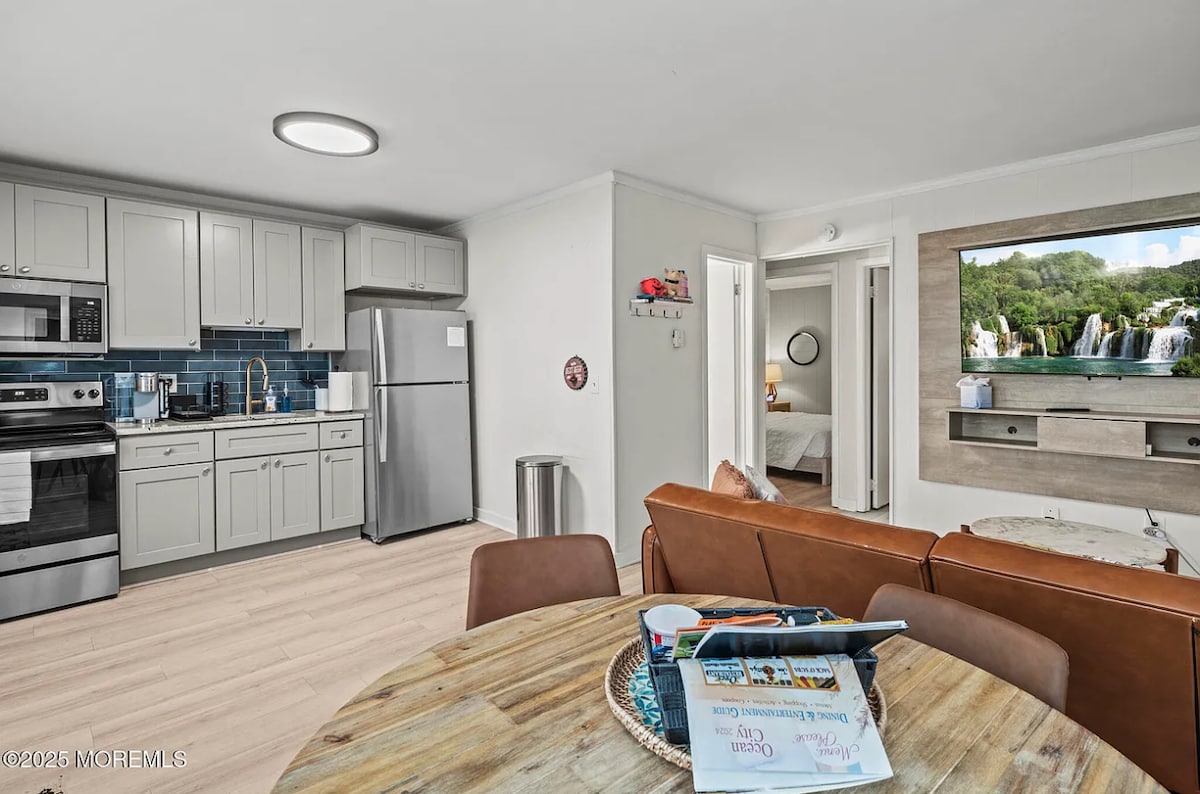 Welcome to Immaculate Airy Retreat—a light-filled 1-bed, 1-bath condo 300ft from Seaside Heights beach & boardwalk. This bright and open coastal space is perfect for couples or small families seeking a relaxing Jersey Shore escape. ✔ 4 Beach Badges ✔ 1 Queen & 1 Pullout ✔ Elevator ✔ Fully Stocked Kitchen ✔ Fresh Linens & Towels ✔ Fast Wi-Fi ✔ Beach Gear ✔ Off-Street Parking for 1 Vehicle ✔ Shared Washer & Dryer ✔ Shared BBQ ✔ The Jersey Shore, Hosted Better by Michael's Seaside Rentals🌊
