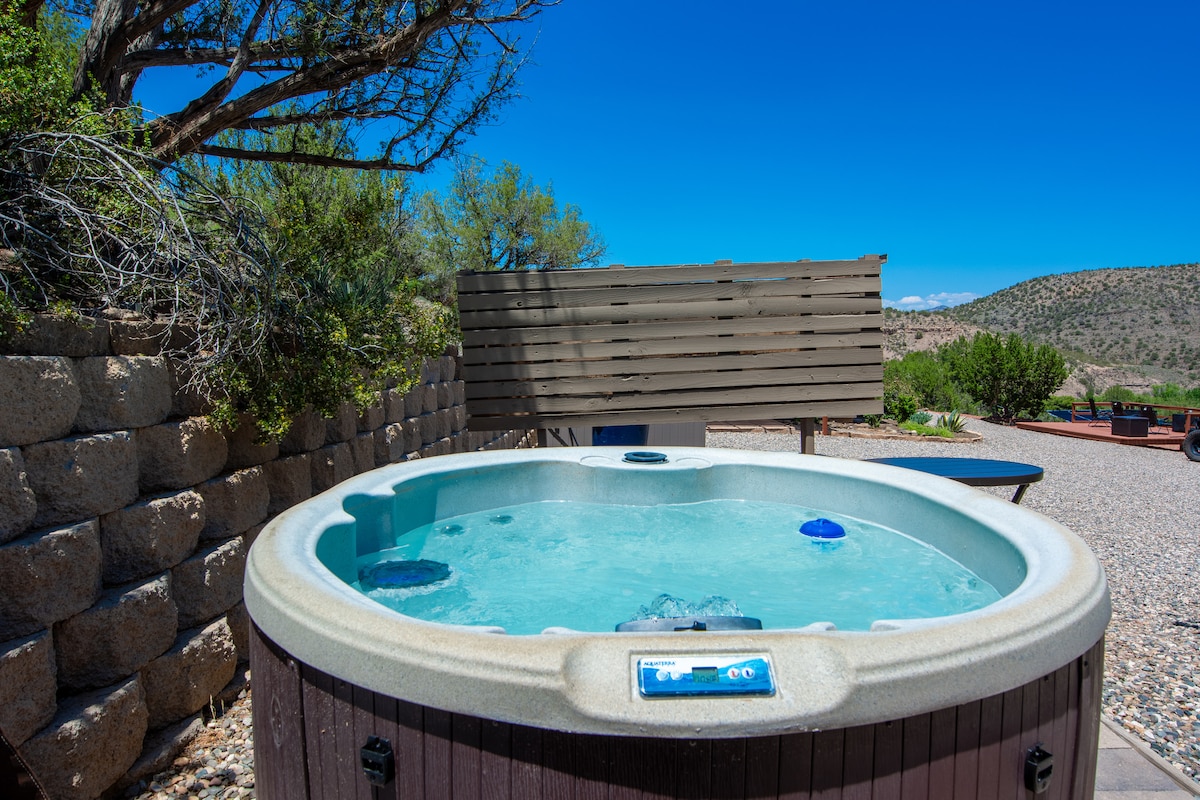 Þetta er virkilega töfrandi staður, heillandi, upprunalegur bústaður í kyrrlátu gljúfri. Með fáa nágranna og miklu meira næði samanborið við aðrar leigueignir er hún fullkomin fyrir þá sem vilja frið og ró. Forðastu annríki Sedona og njóttu ósnortinna, einkagönguferða um rauðan klett. Fegurð allt árið um kring, trjáþak og sundholur bíða þín. Njóttu gasgrillsins, eldstæðisins og heita pottsins á veröndinni. Eignin er einkarekin, umkringd þjóðskógi og mögnuðum Sedona-fjöllum.