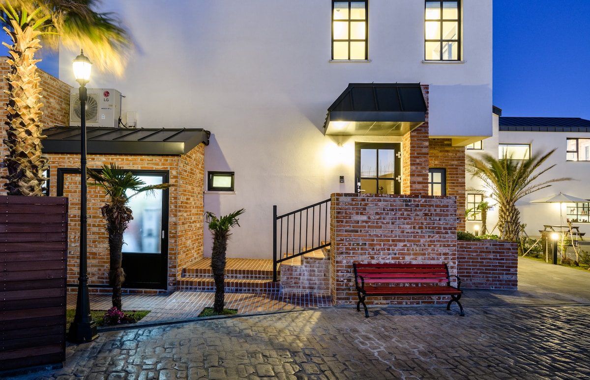 It is located in the east of Jeju Island. It is Haengwon-ri, close to the famous Woljeong Beach. I feel like a resident of Jeju Island who lives in a quiet village. The exterior is surrounded by stone walls. It is a comfortable and comfortable accommodation with modern comfort. Woljeongya is two separate houses There is a small house and a big house The house you're looking at is a "big house." two rooms/two queen beds/bathroom/kitchen/yard/terrace/parking