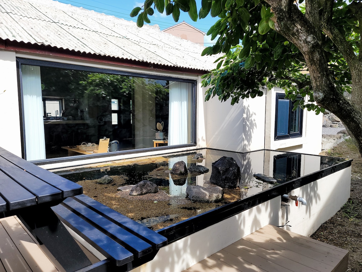 We remodeled our accommodation in March I didn't have a photo ready yet, so I uploaded only one of the representative photos Please keep in mind. (We will replace the photos after remodeling as soon as they are ready.) Ocean View Stay is a traditional stone house located inside a country village in Jeju. It's right by the beach, so you can enjoy the ocean sitting in the living room, deck, and lawn yard. Inside the house, there is one guestroom with one king-size bed.