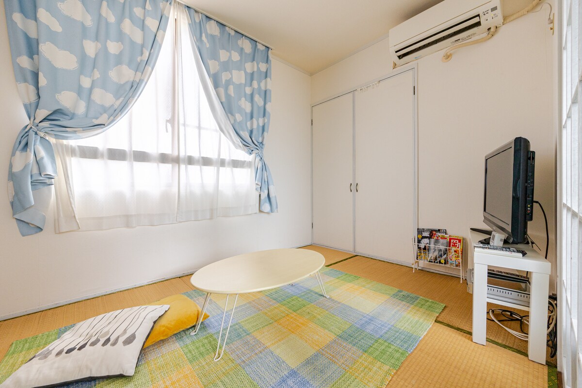Hrein og notaleg eins herbergis íbúð fyrir konu, þægilega staðsett aðeins 1 mínútu frá neðanjarðarlestinni og strætóstoppinu. Verslanir sem eru opnar allan sólarhringinn eru í nágrenninu. Í herberginu eru eldhúsáhöld, hrísgrjónapottur og Sealy-rúm í lítilli tvíbreiðri stærð fyrir góðan nætursvefn. Það eru einnig 3 þvottavélar með þurrkara í byggingunni. Hámarksdvölin er 180 dagar á ári og því er gott að bóka með góðum fyrirvara. Þetta endurstillir sér í apríl. Uppfært verð vegna viðhalds á gæðum: frá 5.500 JPY á nótt árið 2026, með mögulega lítilsháttar hækkun vegna verðbólgu í Japan.