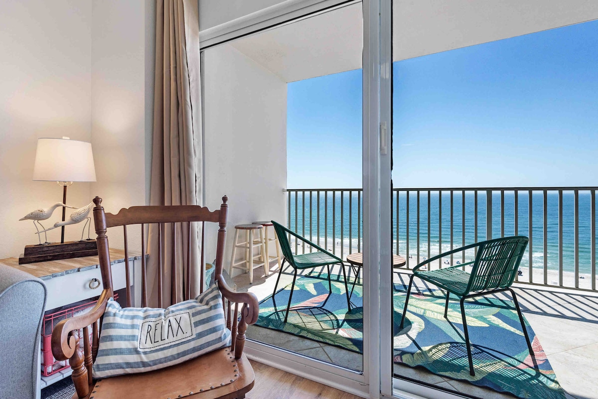 DON'T FIGHT THE CROWDS for space on the beach! Unwind in our comfortable 4th floor Beach Front "Slice of Paradise" with private beach. The balcony offers unobstructed, gorgeous views of the Gulf and the beautiful white sands of Perdido Key. Soak up the sun as you kick back on the balcony and count the dolphins while being lulled by the sound of the waves and the salt air breeze.
