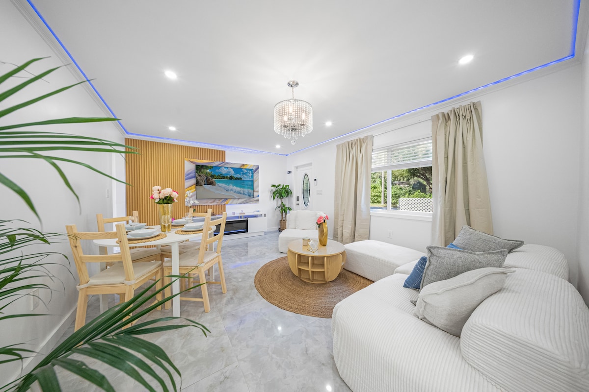 Fallegt nútímalegt og uppgert 2 svefnherbergi 2 baðherbergi heimili á frábærum eftirsóknarverðum stað. Heimilið er í aðeins 3 mínútna akstursfjarlægð frá Hard Rock Casino, nálægt öllum ströndum Flórída og mörgum fleiri. Þetta heimili er hreint og glæsilegt 2 rúm 2 baðherbergi með fullbúnu eldhúsi svo að þér líði eins og heima hjá þér. Stofusófinn okkar er mjög rúmgóður og er notaður sem einn svefn. Við bjóðum upp á háhraða internet, Netflix á húsinu og nóg af ókeypis einkabílastæði í boði fyrir framan heimilið.
