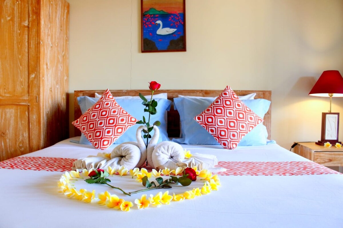 Fullkominn brúðkaupsferðarstaður hannaður fyrir tvo. Glænýja villan okkar býður upp á rómantíska stemningu með nútímalegri arkitektúr, tilvalin til að slaka á og tengjast aftur. Njóttu notalegs svefnherbergis með loftkælingu og 50" 4K sjónvarpi með Netflix, fallegs baðherbergis með heitu og köldu sturtu og þægilegrar stofu með fullbúnu eldhúsi. Einkarými til að fagna ástinni og skapa ógleymanlegar minningar saman.