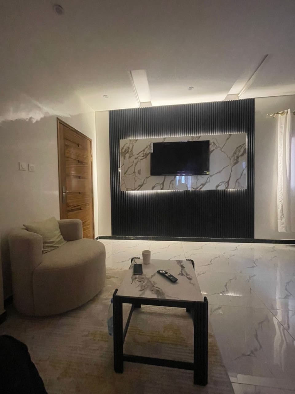 Þessi íbúð, innifelur: loftkælt svefnherbergi og litla loftkælda stofu með loftviftu. Íbúðin sundurliðar á eftirfarandi hátt: 1 svefnherbergi með loftkælingu (ókeypis og ókeypis 5000 fcfa kort, hleðsla upp á 5000 fcfa verður skuldfærð, þetta til að draga úr misnotkun á ofneyslu sem tilgreind er) , 1 lítil gisting með loftkælingu, einnig síðan 2023 (5000 fcfa kortið sem boðið er upp á og kostar ekki neitt, það mun koma aftur til þín til að endurhlaða það.