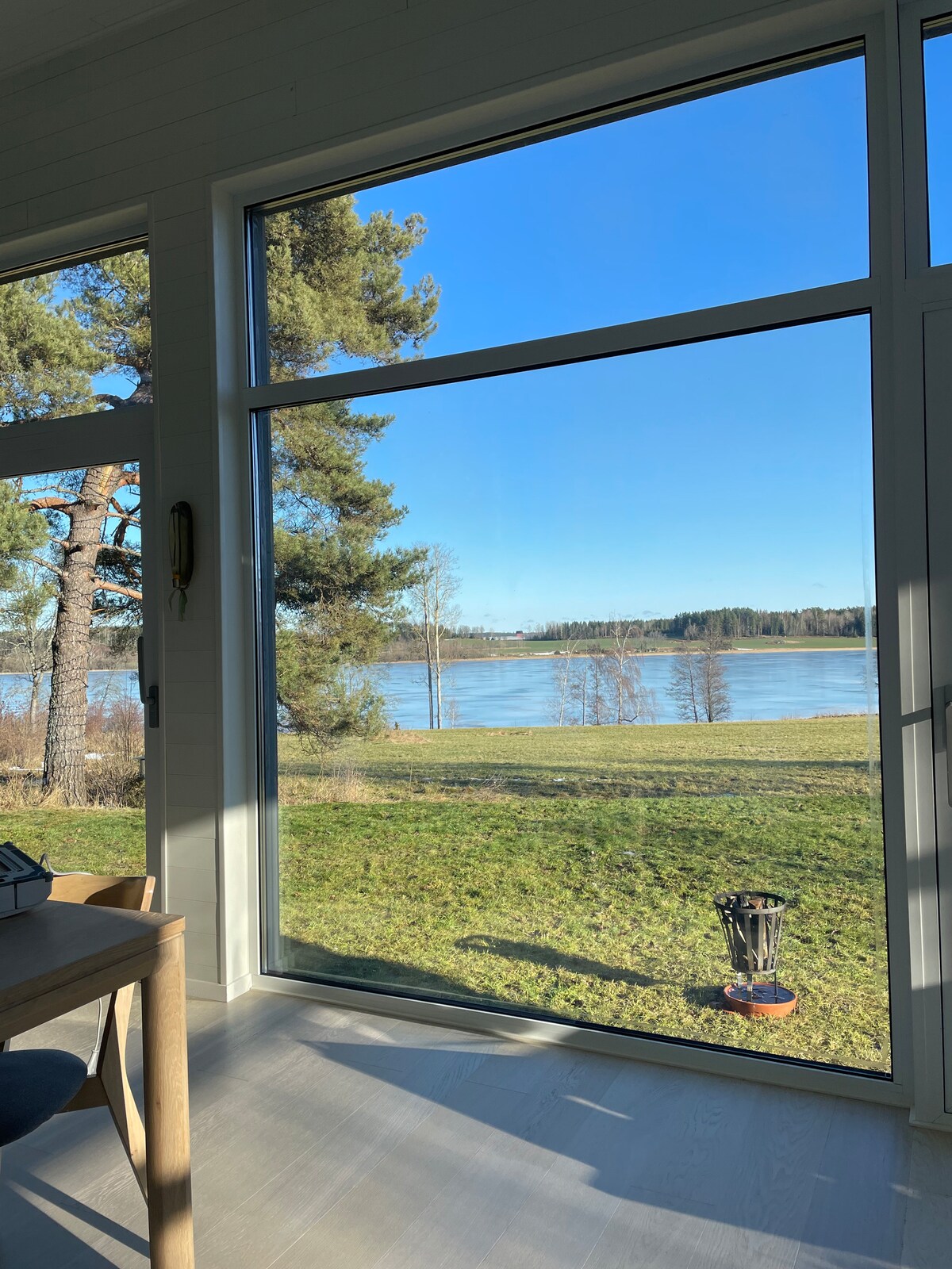 Kemur fyrir í einstakri gistingu á Airbnb - Þrír kofar sem brjóta myglu Nútímahúsið með risastórum gluggum og svölum í kringum húsið. Frábær garður í átt að skóginum. Það er eins og að vera í trjáhúsi í stofunni. - Gufubað til leigu í garðinum. - 450 metrar að stöðuvatninu. - Klifurveggur, trampólín og slökun í bakgarðinum. - Frábær nettenging. Tvö svefnherbergi og risastórt eldhús/stofa með arni. Fullkomið fyrir 4-5 gesti eða fjölskyldu sem hefur gaman af að elda, leika sér og synda.
