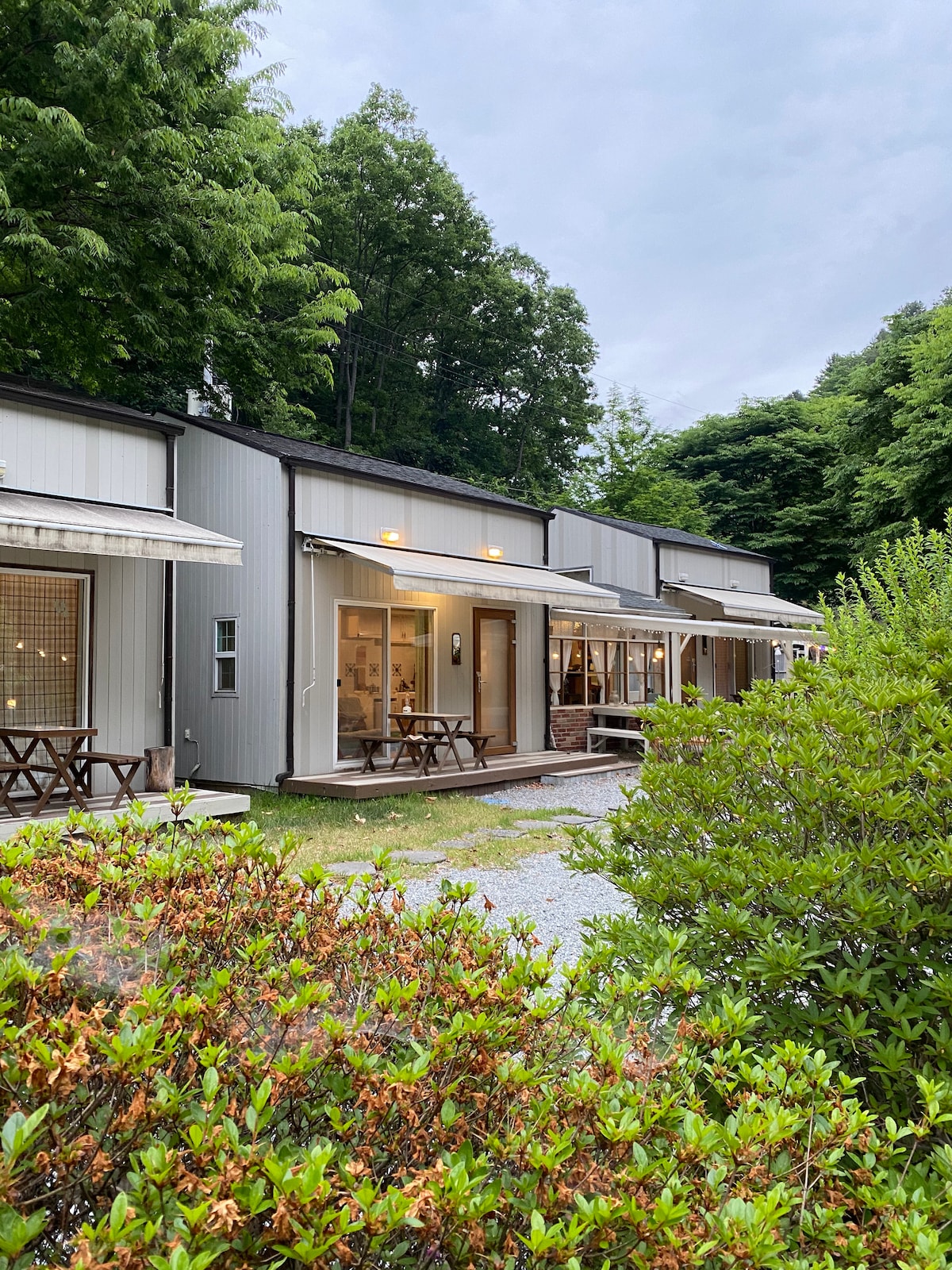 Þetta er sjálfstætt rými sem er notað af öllu teyminu einum degi fyrir sjálfsinnritun. Það er hlýlegt garðveisla með dýrmætri fjölskyldu, vinum, ástvinum, gæludýrum (innan girðingar) og fjölskyldu. Garðyrkja úr furu og ávaxtatré (ferskjur, kastaníuhnetur, epli, valhnetur) og plönturíki eins og froskar, cicadas og locusts gera staðinn að sérstökum náttúrulegum stað fyrir börn í borginni. Við munum þjóna þér sem rými þar sem þú getur róað þreytt hjarta þitt og deilt gleði með ástvinum þínum. Bættu við fersku lofti og fersku grasi til vara. Einnig eru margar upplifanir sem eru mánaðargamlar áður en þú kaupir bústaðinn. Vinsamlegast hafðu samband við okkur.