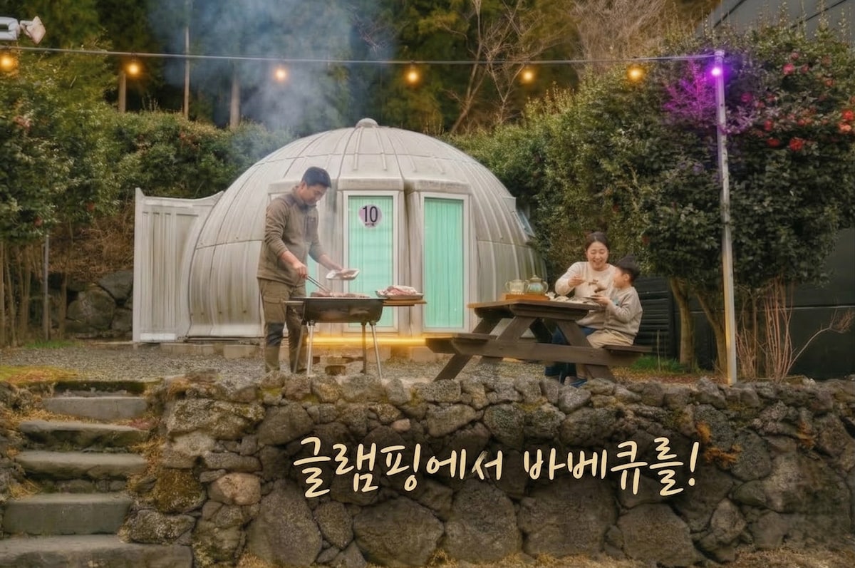 제주 자연 속, 하늘을 향해 둥글게 열린 집이 기다리고 있습니다. 독채 돔 하우스. 오롯이 당신만을 위한 공간입니다. 빔 프로젝터로 좋아하는 영화를 틀고, 따뜻한 숯불 앞에서 소중한 사람들과 이야기를 나누고, 죽 조식과 함께 서두르지 않는 여유로운 아침을 맞이하세요. 주변 안내 해비치 해수욕장까지 차로 5분, 우도 선착장·성산일출봉·섭지코지까지 차로 20-30분 거리입니다. 샤인빌, 해비치, 사이프러스 등 제주의 프리미엄 골프장들도 가까이 있어 골프 여행을 계획하시는 분들께도 완벽한 위치입니다. 입실 시 주변 맛집, 편의점, 빨래방 등 편의시설 위치를 문자로 안내해 드립니다. 원하시면 추가할 수 있어요 빔 프로젝터 무료 바베큐 세트 2인 기준 2만원 따뜻한 죽조식 2인 기준 2만원 (예약 시 미리 말씀해 주시면 준비해 드립니다) 일상의 소음에서 벗어나 진짜 쉼을 찾는 분들을 위해 마련한 곳입니다. 천천히, 깊게, 당신만의 제주를 경험하세요.