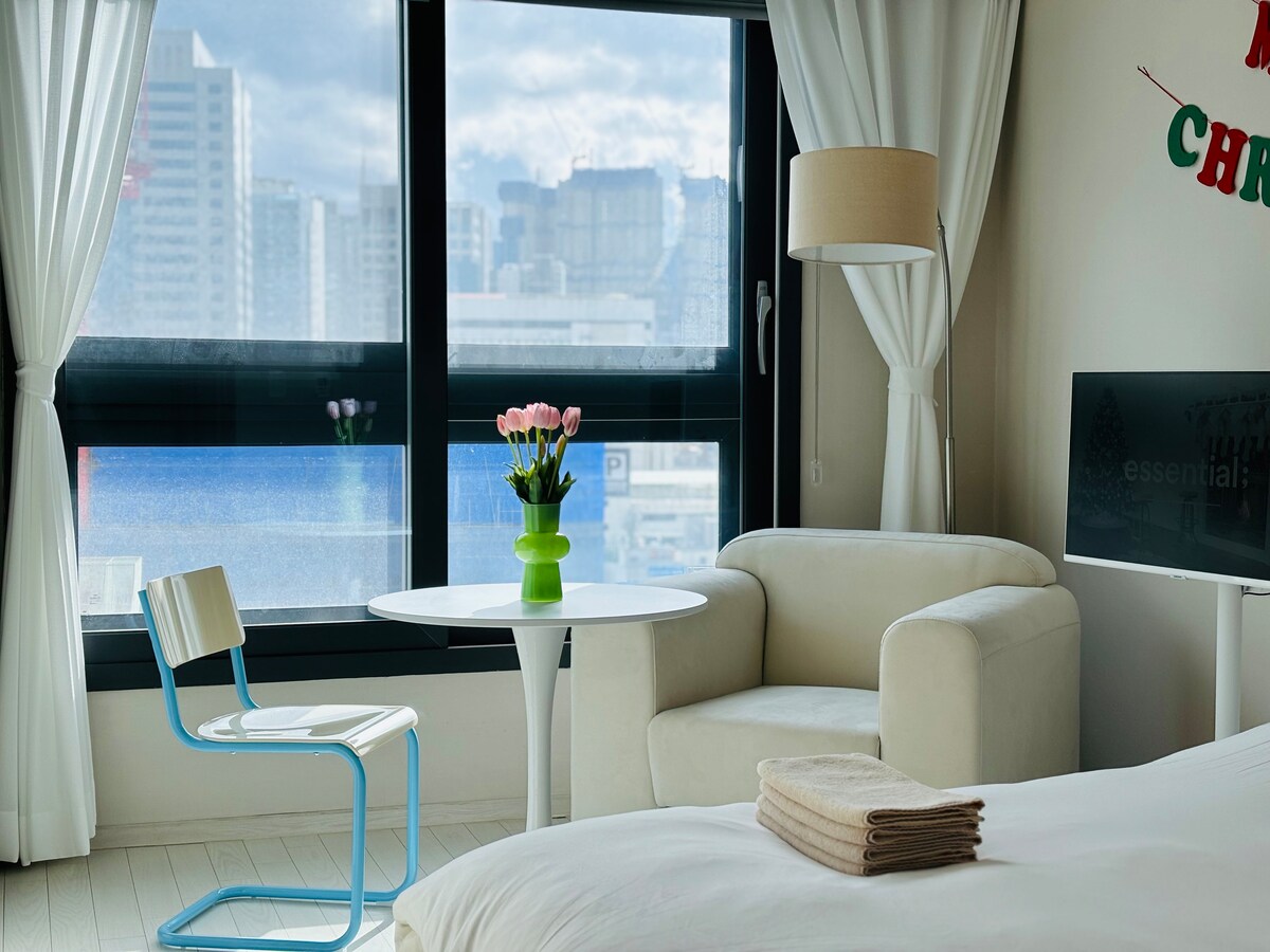 rómantískt hús-1/Haeundae skýjakljúfur með sjávarútsýni/nálægt ströndinni/hreinlæti/Netflix
