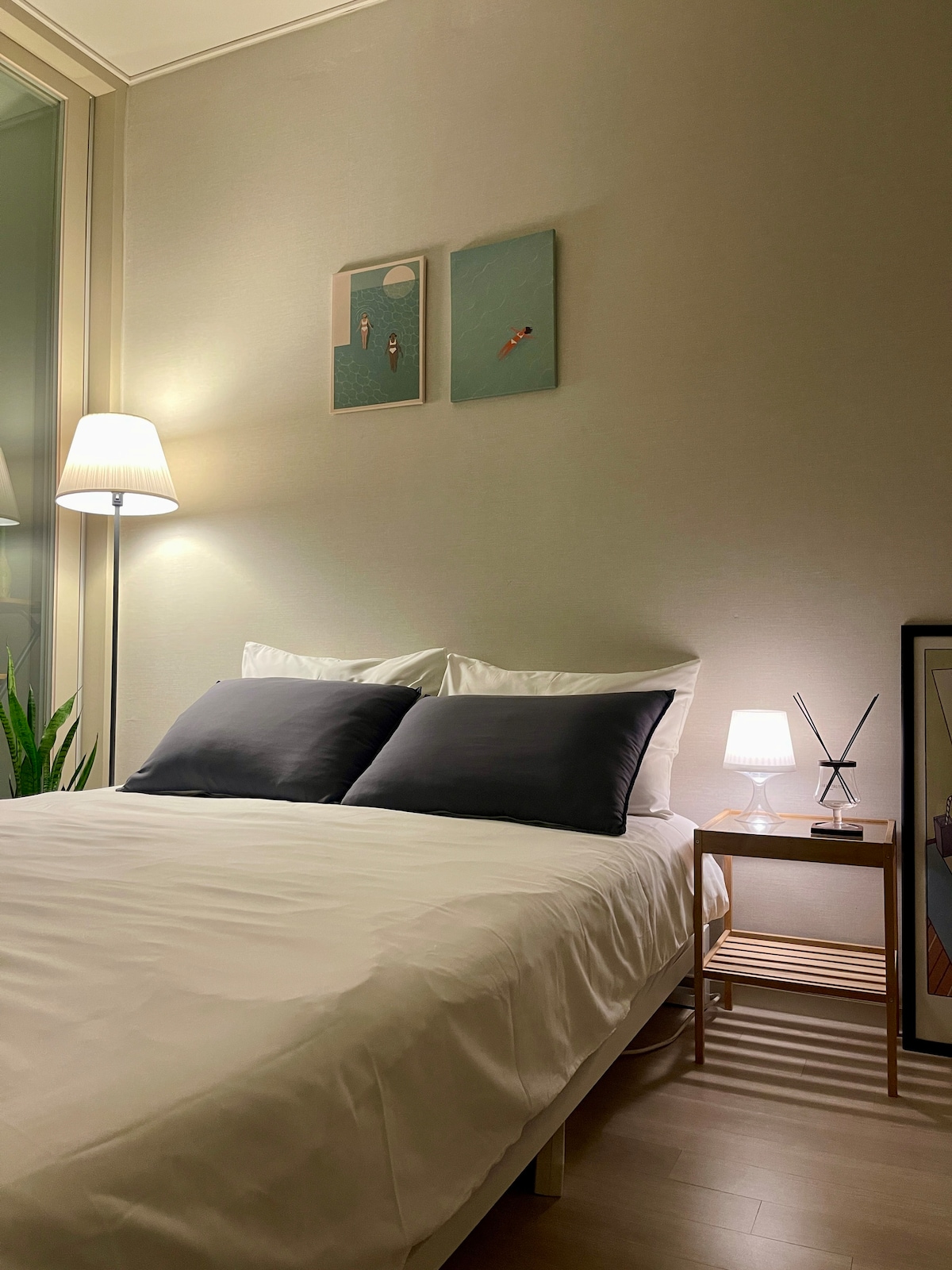 Verið velkomin í Stay Bom í Godeok New City í Pyeongtaek! Airbnb okkar er staðsett beint fyrir framan Hambaksan Park, stærsta vistvæna menningargarðinn í Pyeongtaek, sem spannar 670.000 fermetra. Njóttu fjölbreyttra upplifana í náttúrunni, þar á meðal lautarferða, skoðaðu fallega læki, hvíldu þig í skýlum, notaðu líkamsræktaraðstöðu, leiktu þér á leiktækjum fyrir börn, röltu um skógarstíga og gakktu berfætt/ur á mjúkum slóðum í jarðvegi.