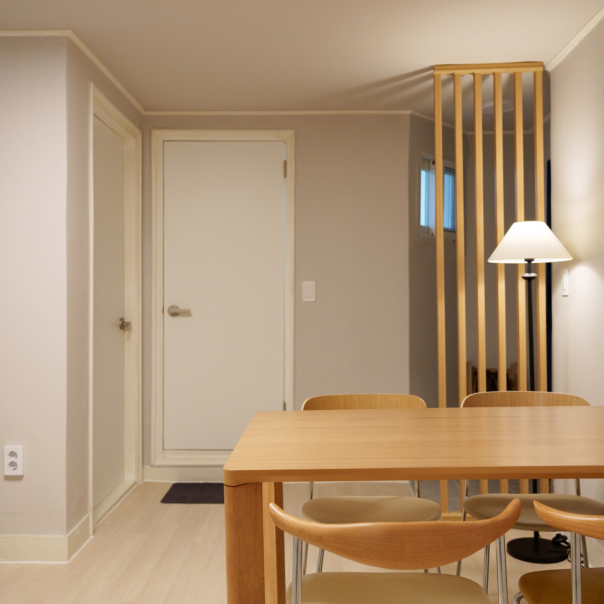 Laon Stay er hlýleg og notaleg eign í rólegu íbúðarhverfi. • Line 7 Junggok Station er í 9 mínútna göngufjarlægð og því er auðvelt að komast að helstu svæðum Seúl eins og Gangnam, Jamsil og Jongno á 20-30 mínútum. • A 1-minute walk away from the Yongmasan hiking trail entrance, which is great for light nature walks or walks, and Children's Grand Park is about 10 minutes away with car, making it a great location for families. • Við bjóðum upp á bílastæði við hliðarveginn nálægt gistiaðstöðunni svo að það er þægilegt fyrir þá sem koma með bíl. • Gistiaðstaðan er staðsett á hálfstigi rannsóknarinnar en þetta er notaleg eign með tilfinningu á fyrstu hæð sem fer í raun örlítið niður vegna hæðarinnar.