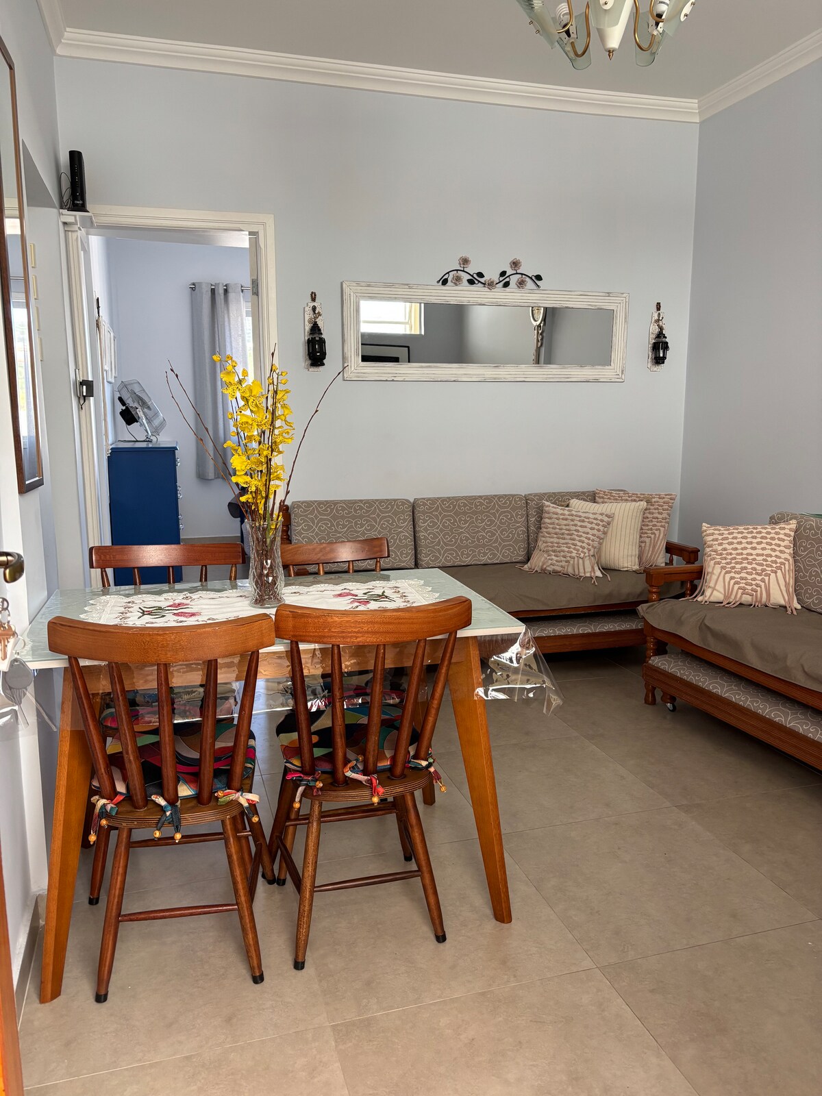 Relaxe com toda a família neste ótimo apartamento , acomodação tranquila,onde possui dois quartos com ventiladores de teto e camas de casal .cozinha completa,micro-ondas,fritadeira máquina de lavar,sanduicheira purificador de agua ,utensílios, secador de cabelo no banheiro,sala de jantar ,sala com tv de led ventiladores teto, Obs NAO OFERECEMOS ROUPAS DE CAMA E TOALHAS . Prédio não possui elevador e o apartamento fica no 3°andar.ACOLHEMOS TB PETS DE PEQUENO PORTE