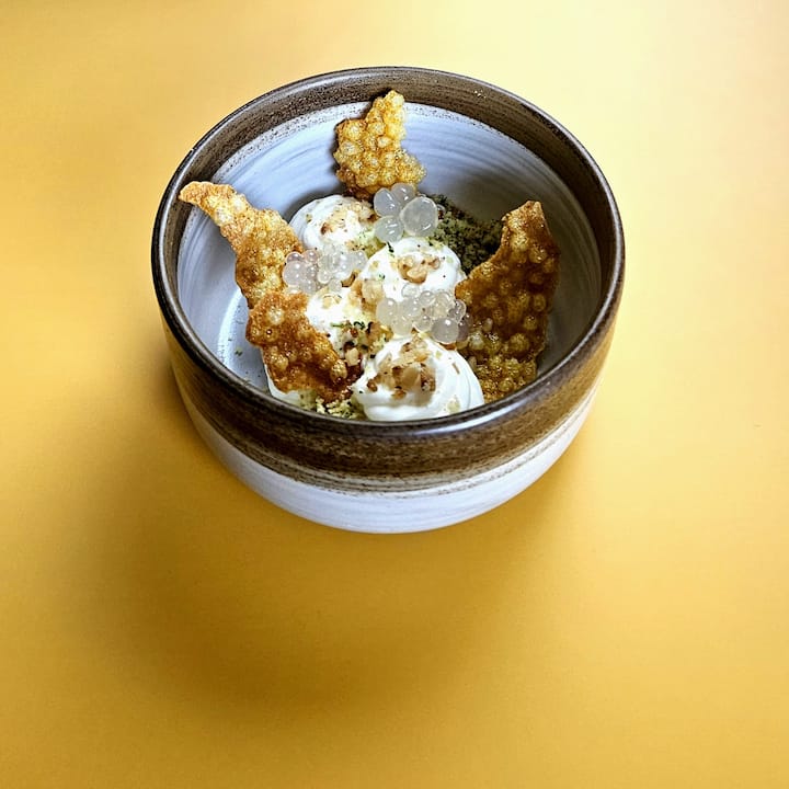 Á þessum kokkamatseðli er lögð áhersla á námskeið sem eru full af staðbundnu, fersku hráefni frá býli með latneskum og asískum áhrifum.