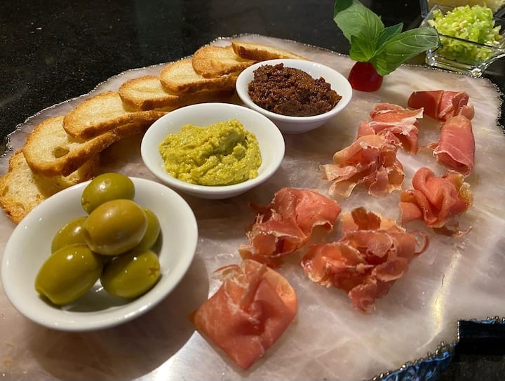 Njóttu nýrrar byrjunar með hummus og grænmetisbitum og síðan græsku quinoa-salati. Veldu rjómalöguðum svepparísóttó sem aðalrétt og ljúktu á því með hressandi sítrónusorbet með rauðum ávöxtum. Alveg grænmetisæta upplifun.