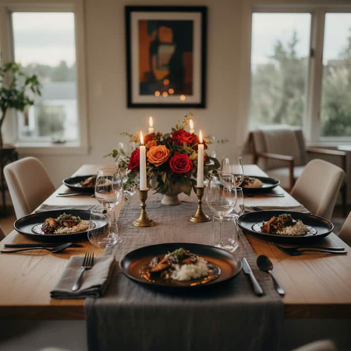 Rómantískt kvöldverðarljós með kertaljósi fyrir tvo. Njóttu fyrirfram ákveðinnar, fjölrétta matseðils sem er unnin úr plöntuafurðum og sett á disk á staðnum, ásamt mjúkri kertaljósi fyrir notalega kvöldstund heima eða í eign þinni á Airbnb.
