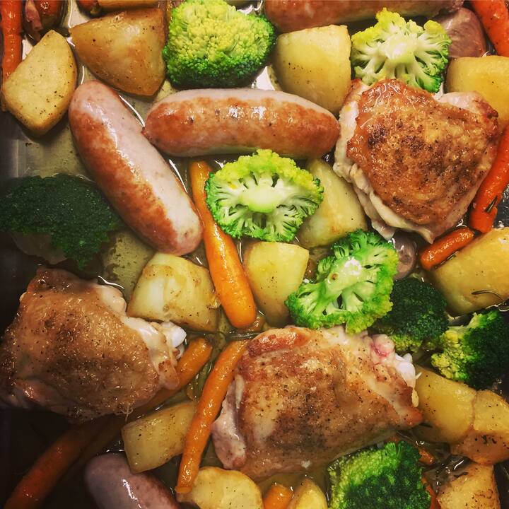 Safaríkur sítrónu- og timiansteiktur kjúklingur.