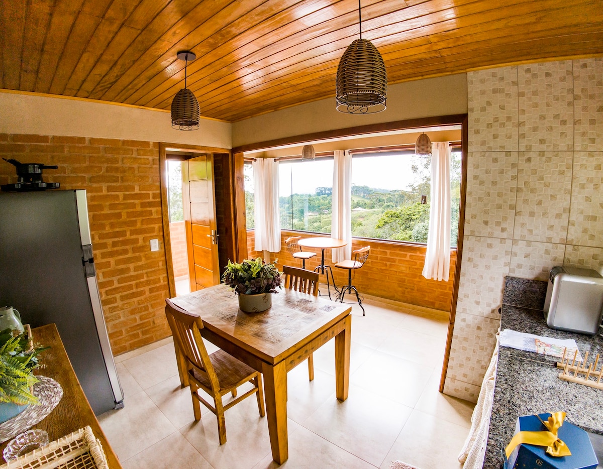 Hvíldu þig í fríinu með útsýni yfir fjöllin. Tilvalið fyrir þá sem vilja endurhlaða, fagna ást með glasi af víni eða jafnvel vinna lítillega ásamt góðum kaffibolla! 18 mín. frá miðbæ Sto Antônio do Pinhal (12 km) 45 mín. frá Campos do Jordão. ATHUGASEMD 1: Trecho á malarvegi: Aðeins 3 mínútur ATHUGASEMD 2: Frá hurðinni að klefanum erum við með bratta hækkun, en malbikuð; Athugaðu dekkin fyrir rigningardaga. ATHUGASEMD 3: Við bjóðum ekki upp á máltíðir