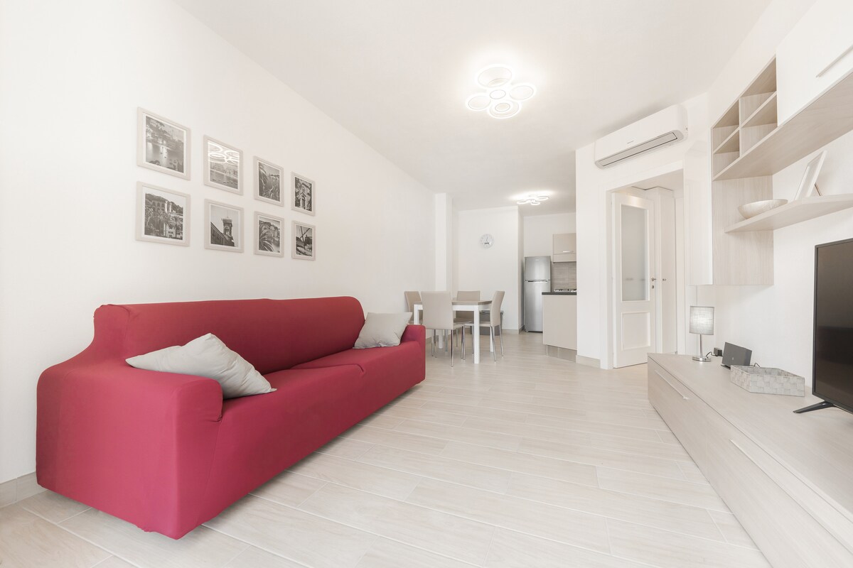 Hágæða íbúð með einkabílastæði og risastórri verönd. Stutt 5/10 mínútna gangur á ströndina, lestarstöðina og miðbæinn. Útitröppur opnast inn í fallega innréttaða íbúð með viðarþaki og harðviðargólfi, nýstárlegu eldhúsi og miðstýrðri loftræstingu. Master svefnherbergi er með en suite baðherbergi með sturtu og baði. Stofur og borðstofur eru útfærðar með nútímalegum húsgögnum. Skipulagið gerir hann fullkominn fyrir tvö pör eða fjögurra manna fjölskyldu.