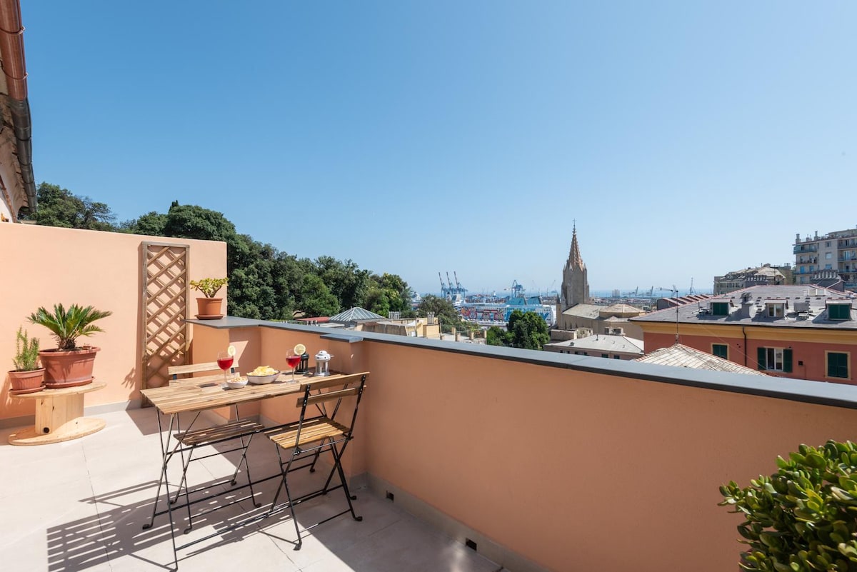 Efsta hæð með lyftu fyrir 2 og verönd fyrir ofan. Við hliðina á hinu konunglega Via Garibaldi með hinu virta Palazzos dei Rolli, við rætur hins miðlæga Piazza De Ferrari, 1 km frá viðkomandi aðaljárnbrautarstöðvum, sökkt í stærsta sögulega miðbæ Evrópu, staðsett á efstu hæð með beinum aðgangi að lyftunni, í einkennandi byggingu frá 14. öld, finnum við „la Terrazza sui caruggi“.