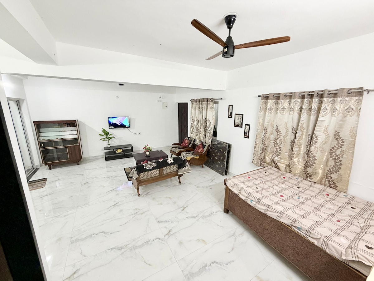 The secure gated township with operational club of society is very calm , peaceful and green . Milli margra íbúðafjölskyldna er þetta ekki einangruð eign við þjóðveginn. Íbúðin er örugg og rúmgóð og bílastæði eru einnig í boði. Þráðlaust net er ekki í boði eins og er. Ekkert rafmagn til baka en mjög sjaldgæft rafmagn í þessu bæjarfélagi .