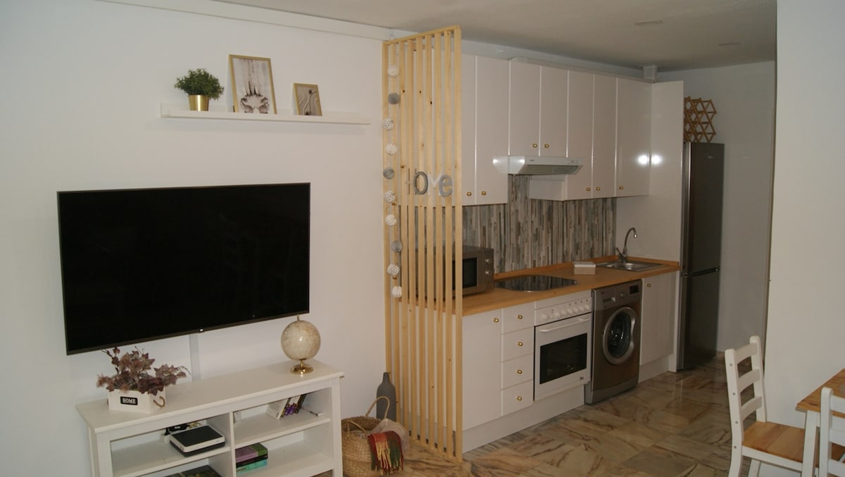 Studio reformado við hliðina á Guadalquivir ánni. Split air conditioning (cold/heat), large terrace with chill out area, bed "queen" visco (150x190), wifi 600MB, Smart TV, teleworking area, fully equipped kitchen and bathroom with bathtub! Mjög björt og hljóðlát (í íbúasamfélagi), frábær samskipti (neðanjarðarlest/strætó/hjólastígur). Í aðeins 10 MÍNÚTNA GÖNGUFJARLÆGÐ frá sögulega miðbænum, í frægasta hverfinu í Sevilla, með fjölbreyttu úrvali verslana og veitingastaða. Leyfi: VUT/SE/06907