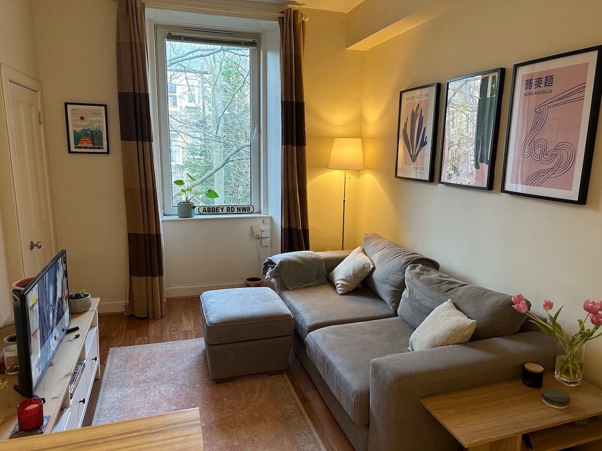 ✨ Stylish main-door Edinburgh flat in a convenient south-side location with easy access to the city centre. Two bedrooms — luxurious super-king master and cosy double box room. Elegant bay-window lounge with ornate cornicing, centre rose and decorative fireplace, brand new wooden herringbone flooring and a stylish fully equipped kitchen. Visitor Levy included (from Summer 2026). Free public parking approx. 10-minute walk away.