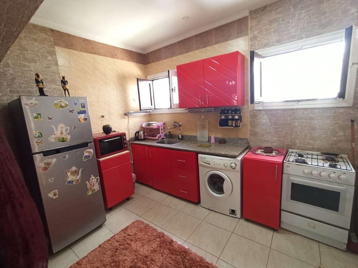 Sharm er talið frábært val fyrir ferðamenn, ferðamenn og þá sem hafa áhuga á köfun vegna gnægðar og fegurðar kóralrifja, auk veitingastaða, kaffihúsa, markaða, næturklúbba og öryggis. Húsið er staðsett í miðju svæði fyrir flugvöllinn, viðskiptamarkaðinn og ströndina (10 mín). Þú getur einnig notið „Al-Fanar“ strandarinnar og veitingastaðarins okkar „Melodies“ (ítalskur veitingastaður sem býður upp á 15% afslátt fyrir gesti okkar). Við skipuleggjum einnig sjóferðir og safaríferðir.