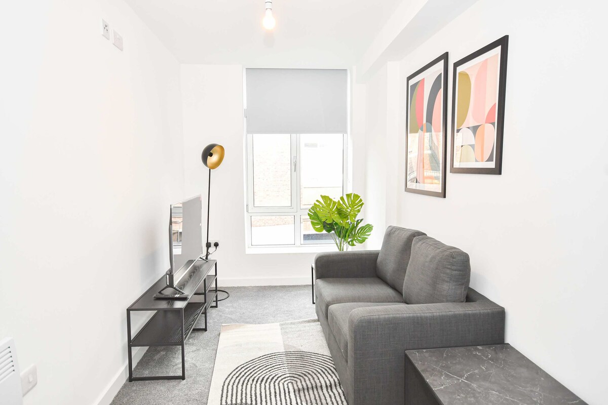 A modern, sought-after and stylish 1-bed apartment in the beating heart of Sheffield city centre, with a private balcony overlooking Devonshire Green. Located in the Devonshire Quarter of the city, it’s a perfect place for couples or business travellers, surrounded by all that Sheffield has to offer, including theatres, music venues, Turkish baths, shopping, clubs and bars, and access to the Peak District & surrounding areas.