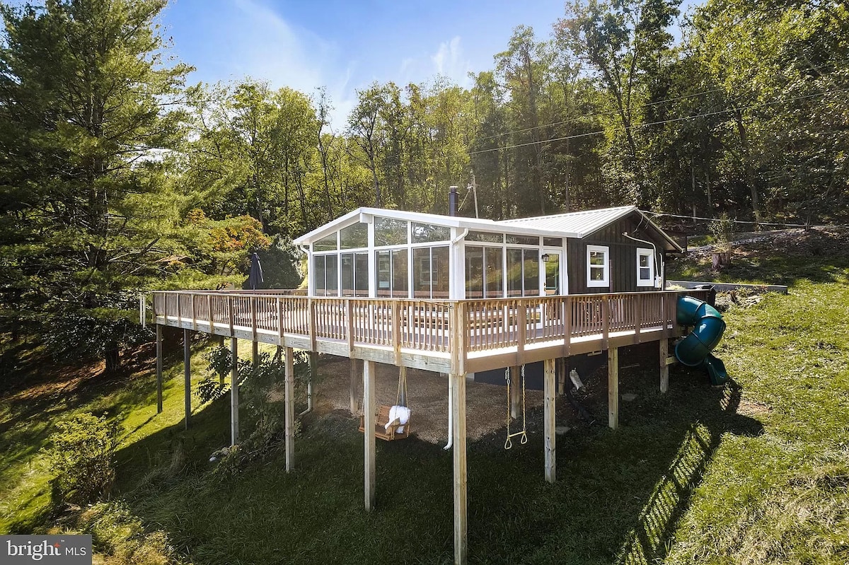 Less than 90 minutes from DC, perfect for oxygen bathing, escape to a quiet, safe, private Shenandoah Valley cabin with 270° mountain and river views and no neighbors—just friendly deer passing by. Enjoy a spacious deck and sunroom, fire pit with firewood, coffee provided, and a fully stocked kitchen. Firm queen bed, cozy bunk beds, Wi-Fi, Smart TV, AC/heat. House trained pets welcome. Prime Location: Minutes to downtown Luray, Front Royal, the Shenandoah River and Shenandoah National Park.